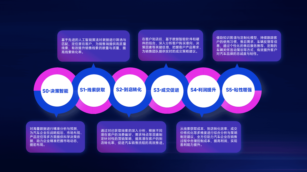 通过拓宽潜在客户来源、、优化线索分配并提高到店转化率,,,,以增强销售效率。。。。同时,,利用线索数据不断优化分析模型,,,,有效提升转化率,,,扩大营销影响力。。。